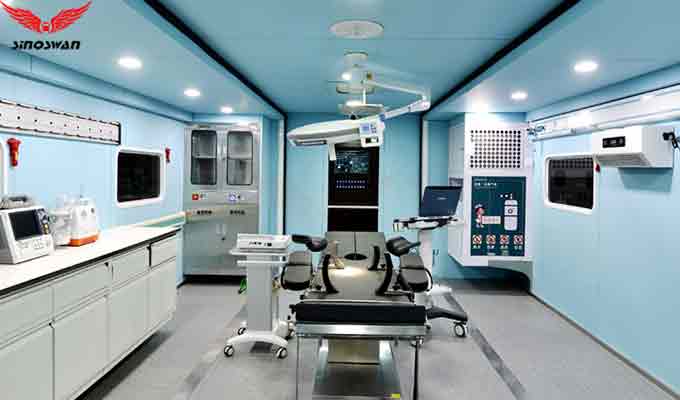 Sinoswan clinic vehicle is an integrated system, which combines vehicle cloud control system, vehicle heating and cooling air conditioning system, bilateral expansion structure, doctor-patient diversion design, 10,000-level purification system and independent power supply system.