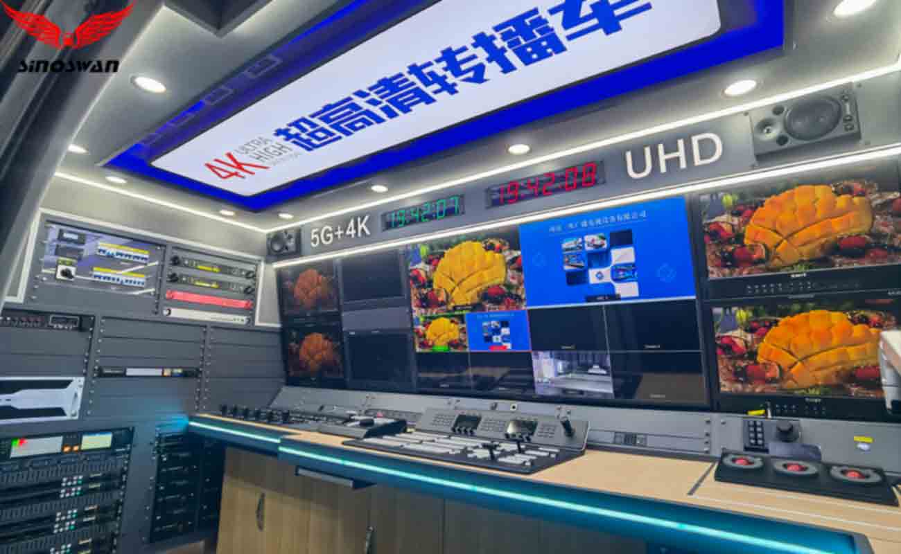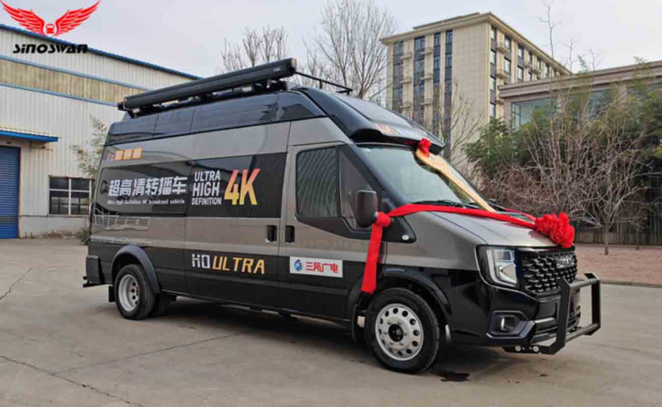 SINOSWAN OB Van is an integrated system combining an adapted chassis, reinforced body modification, HD audio-visual solutions, stable communications, reliable power supply, and personalized customization—fully meeting the needs of outdoor broadcasting.