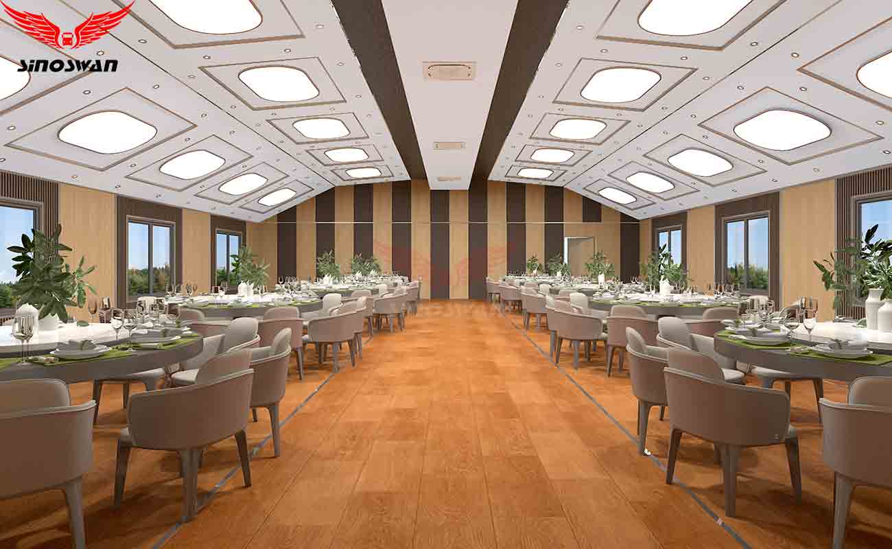 The Sinoswan Banquet interior is designed with precision to create a luxurious and comfortable atmosphere.