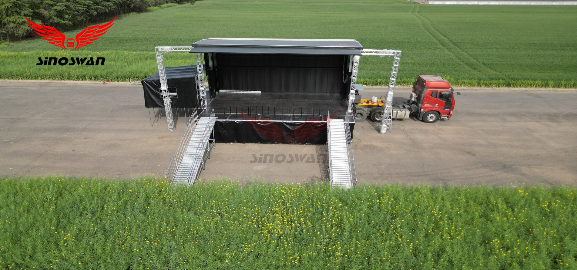 The Sinoswan mobile stage trailer combines functionality, aesthetics and convenience to elevate any event.